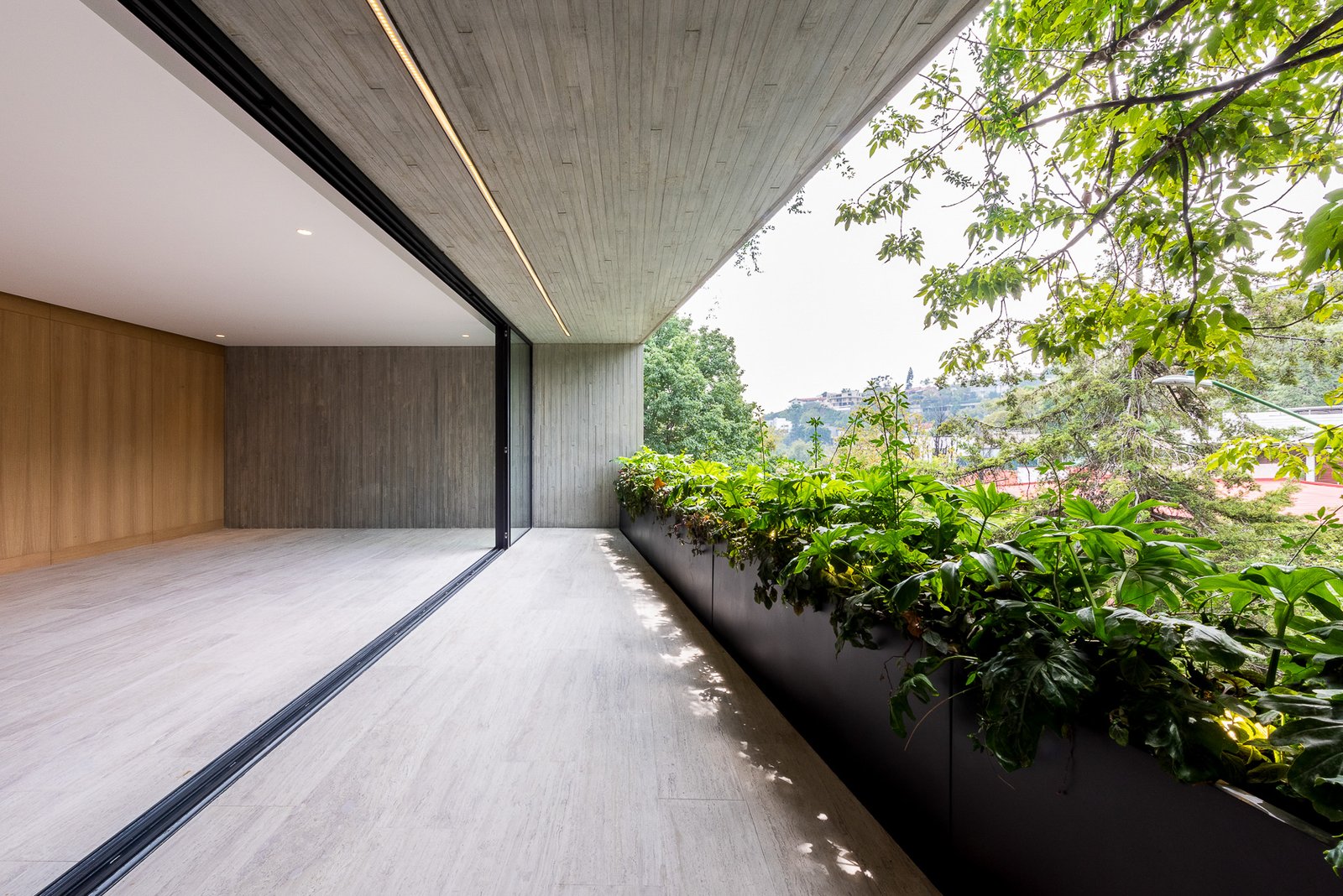 Ubicado en una zona residencial al poniente de la ciudad, el proyecto plantea espacios de trazo simple y estética contenida, en diálogo con su entorno. Se organiza en cuatro niveles de vivienda y dos sótanos de estacionamiento. El acceso, por debajo del nivel de calle, conduce a un lobby con esculturas y vegetación. Cada planta alberga un departamento con terraza frontal. La fachada integra volúmenes de concreto y una celosía de madera que filtra luz y privacidad.