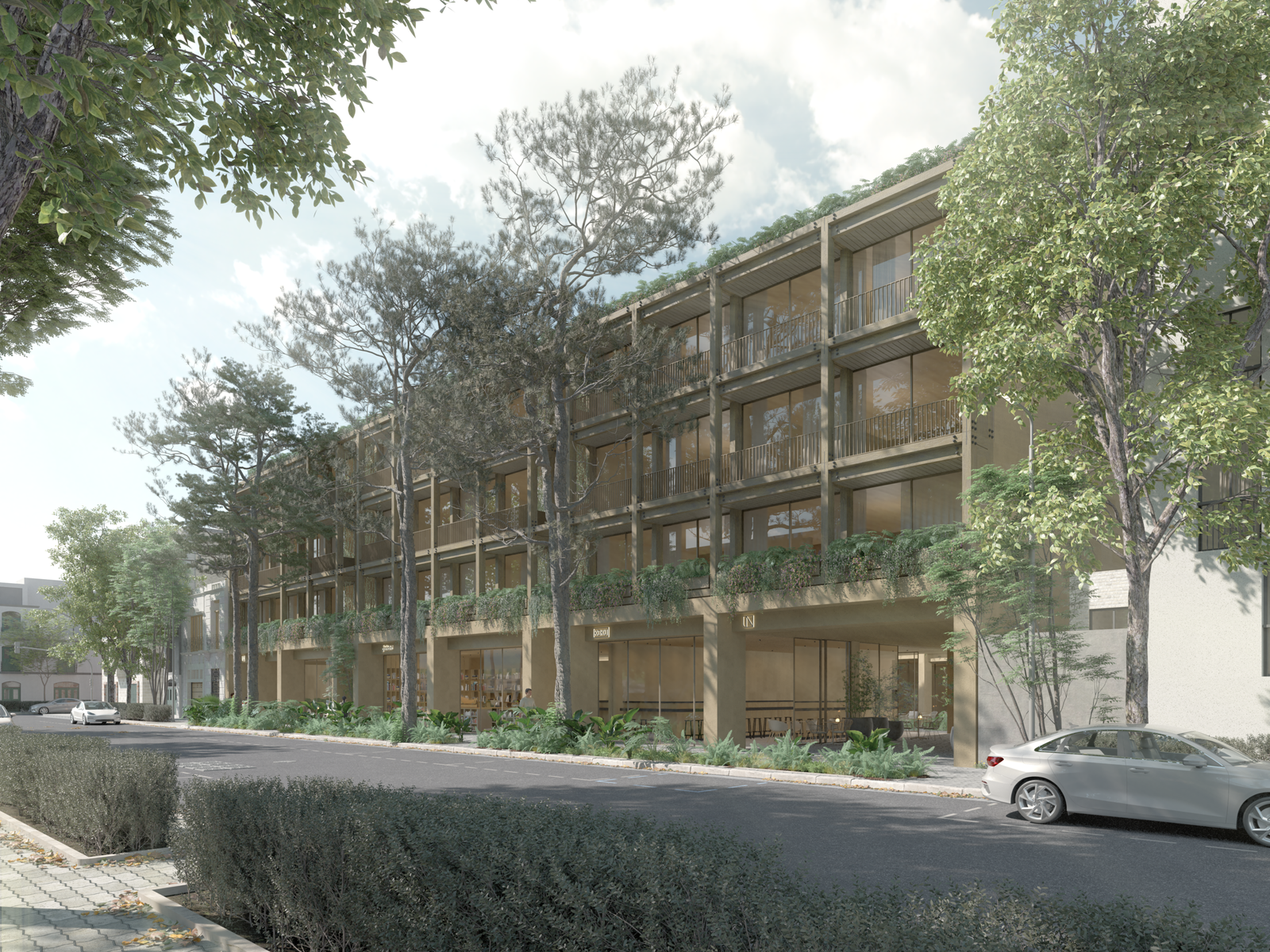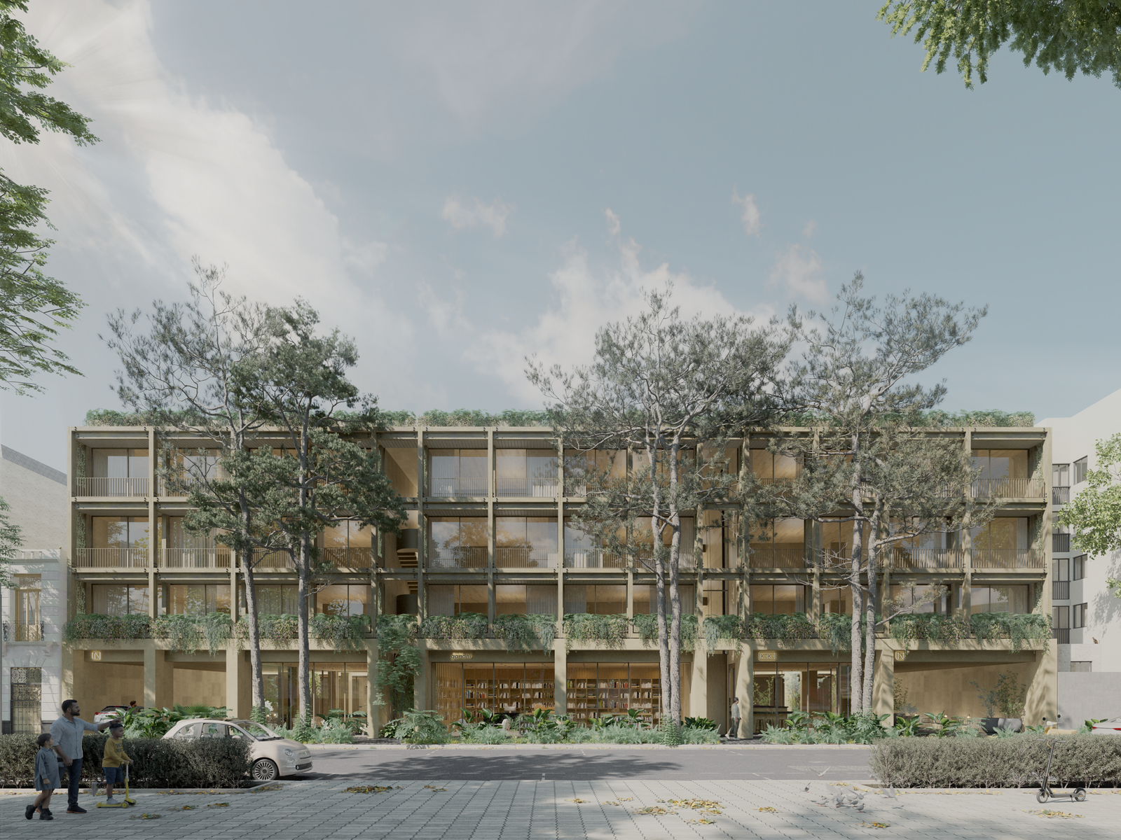 ONTO Residences Versalles es un desarrollo de uso mixto compuesto por dos torres residenciales organizadas alrededor de un patio central que estructura el conjunto. La planta baja comercial activa el espacio urbano, mientras 48 departamentos con terrazas se desarrollan en los niveles superiores. La vegetación, el roof garden y la claridad estructural generan un equilibrio entre comunidad, privacidad y calidad espacial.